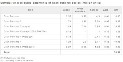 Sony Computer Entertainment has announced today that the Gran Turismo series has hit the 50 million mark. The list of sales for each games puts Gran Turismo 3 A-Spec in the lead, with 5 Prologue in dead last. View the press release below.